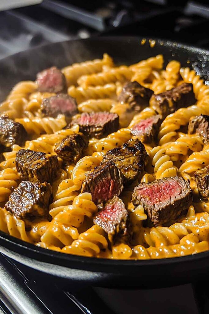 It’s quick, satisfying, and perfect for those nights when you want comfort food with a little flair. The steak stays tender while the pasta soaks up the sauce.