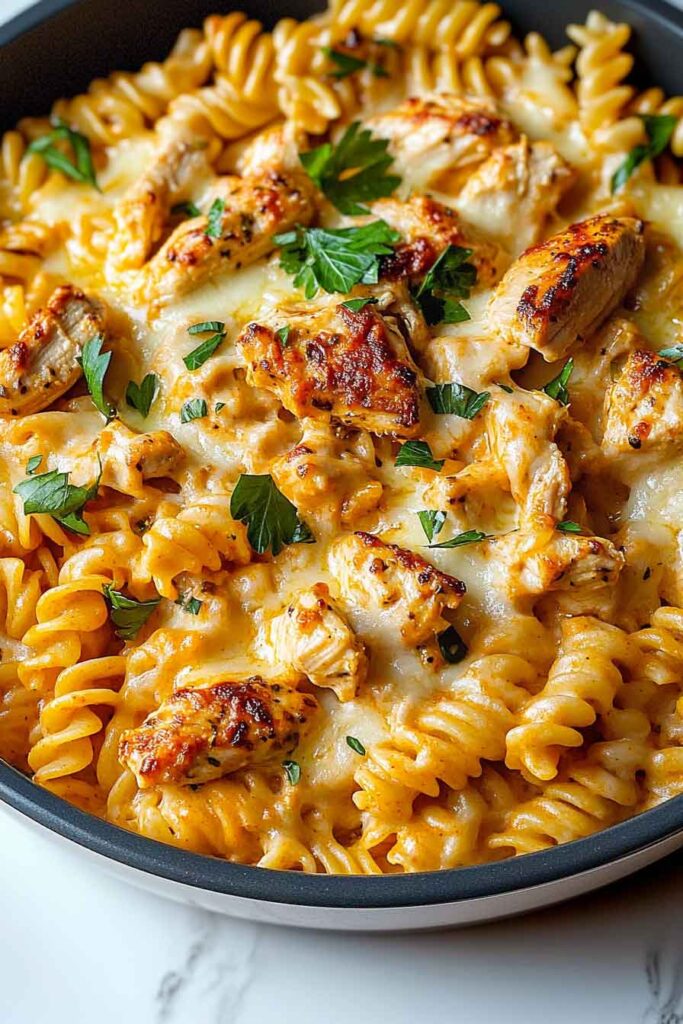 For spice lovers, this pasta bake brings heat and creaminess in perfect balance. The Cajun seasoning adds a bold kick while the cheese and cream sauce make it indulgent and cozy.