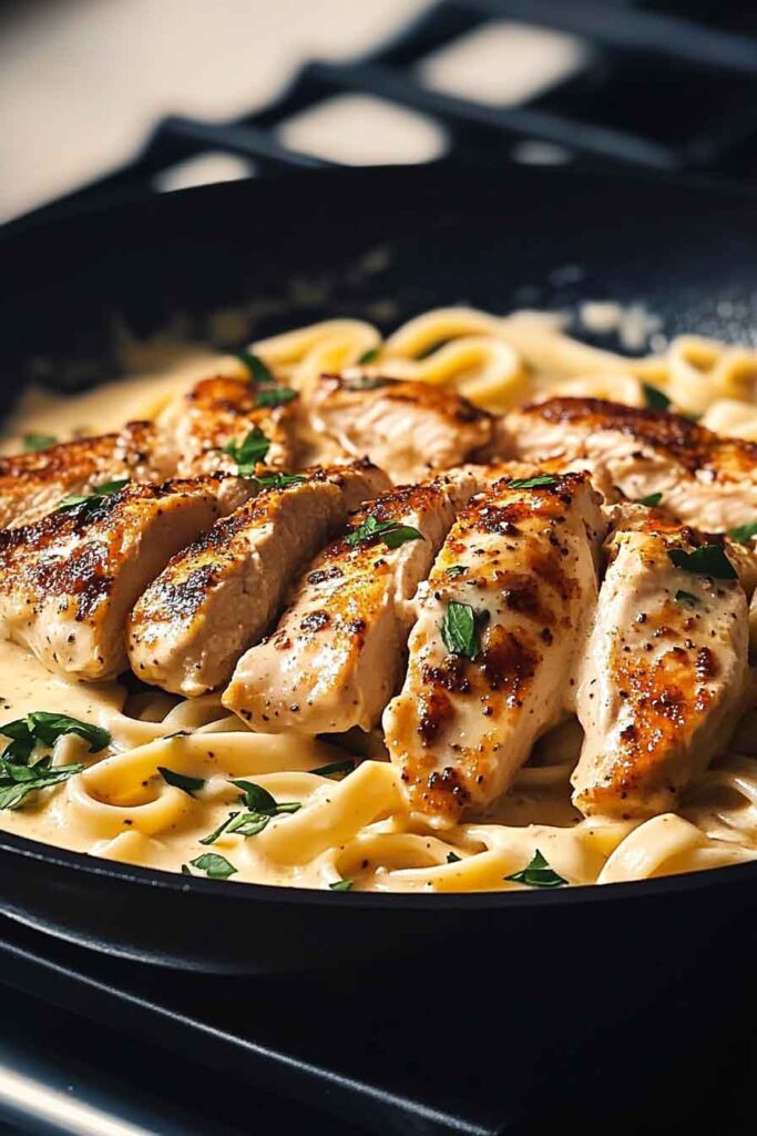 This one-skillet Cajun chicken alfredo is creamy, spicy, and packed with flavor. Tender chicken is coated in bold Cajun spices, then tossed with fettuccine in a rich, cheesy alfredo sauce.
